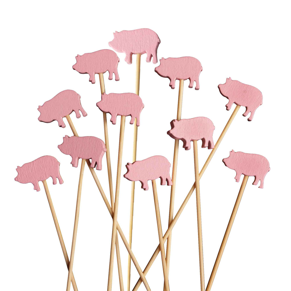 These bamboo pig picks will bring style to your cocktails and appetizers. The pig on each end will bring out a unique look and will certainly add a nice touch of color to appetizer platters. Great for any occasion, celebrations, catering events, or restaurants. Washable and reusable or disposable as you desire.