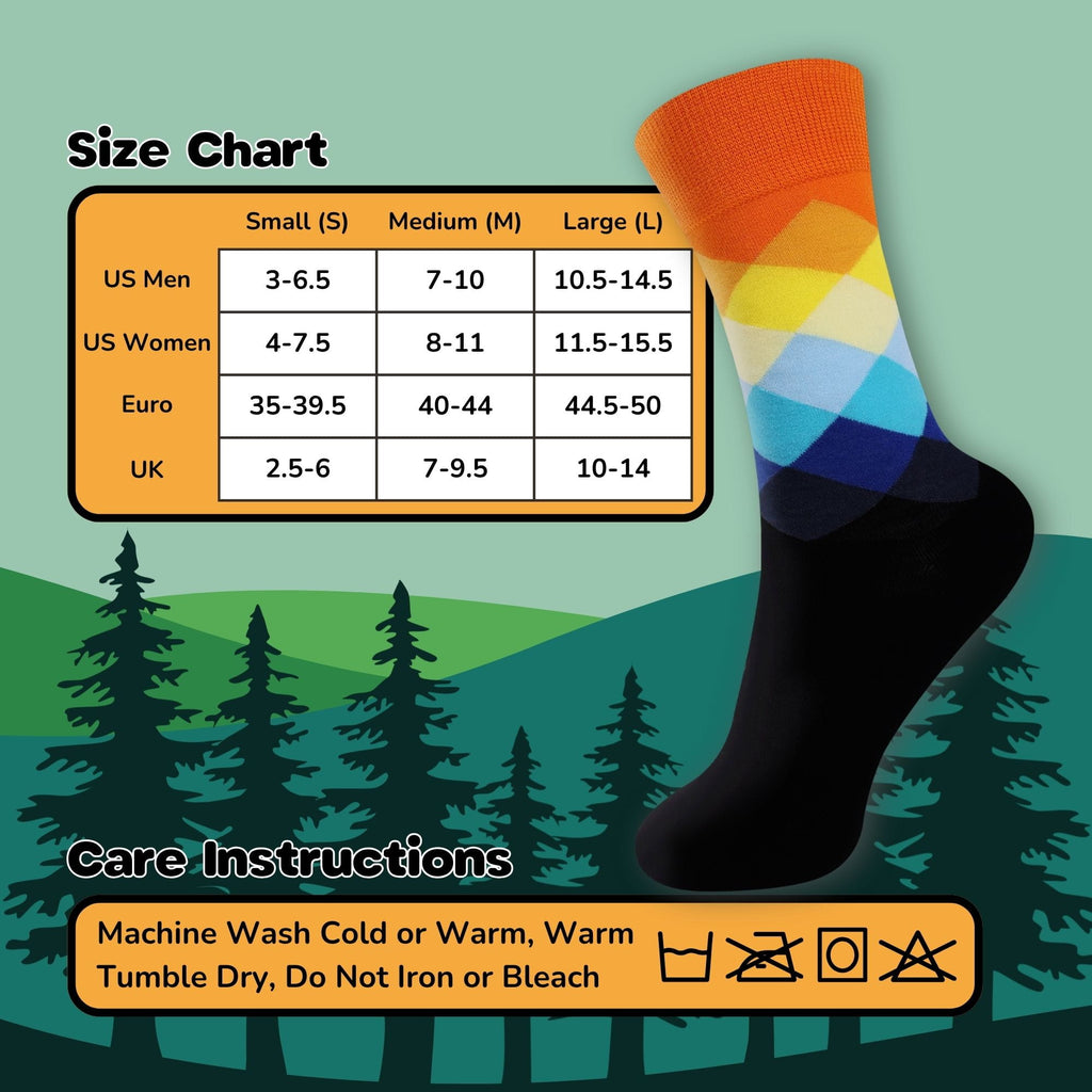 - USES Perfect for both casual and business wear, these Unisex Crew socks pair effortlessly with jeans, leggings, or dress trousers, and complement everything from sneakers to loafers or dress shoes. Great for daily wear, gifting to family and friends, or adding a stylish twist to school events and dances. Channel your inner outdoor adventurer, even while you're at the office or school, with colors inspired by nature's trails