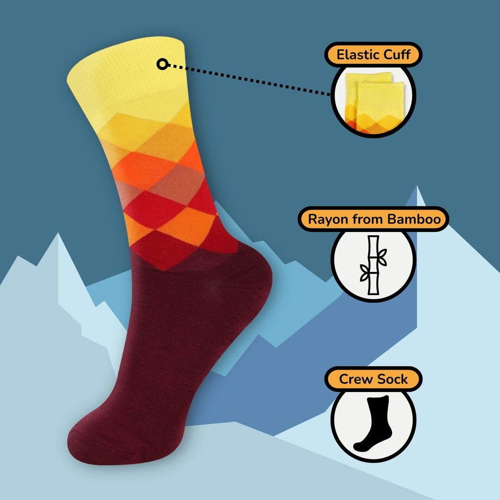 Step into color, adventure, and retro vibes with the Rayon from Bamboo Diamond Trails Crew Socks. Inspired by the vibrant mid-century modern colors found in nature, these socks add a playful touch to your everyday look. Featuring a classic diamond pattern, these socks balance style and comfort thanks to the lightweight rayon from bamboo fabric.