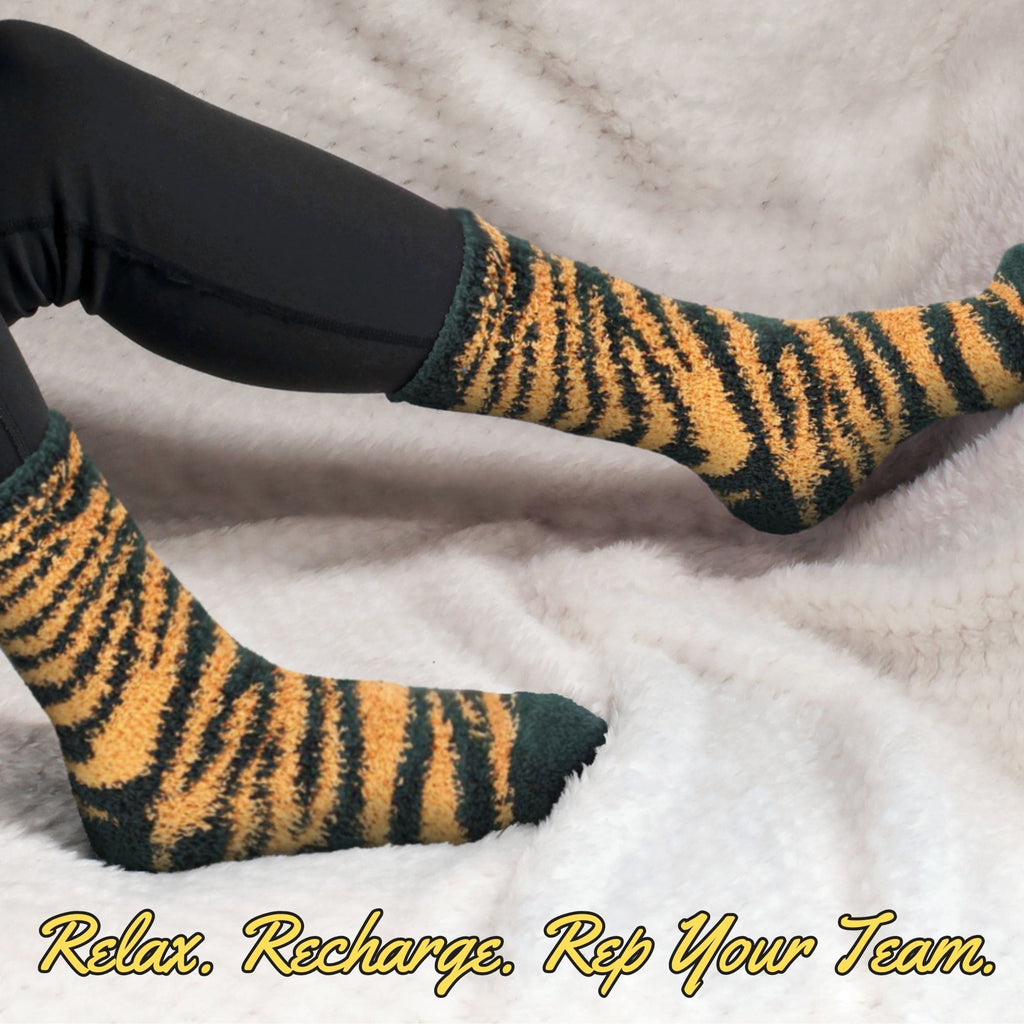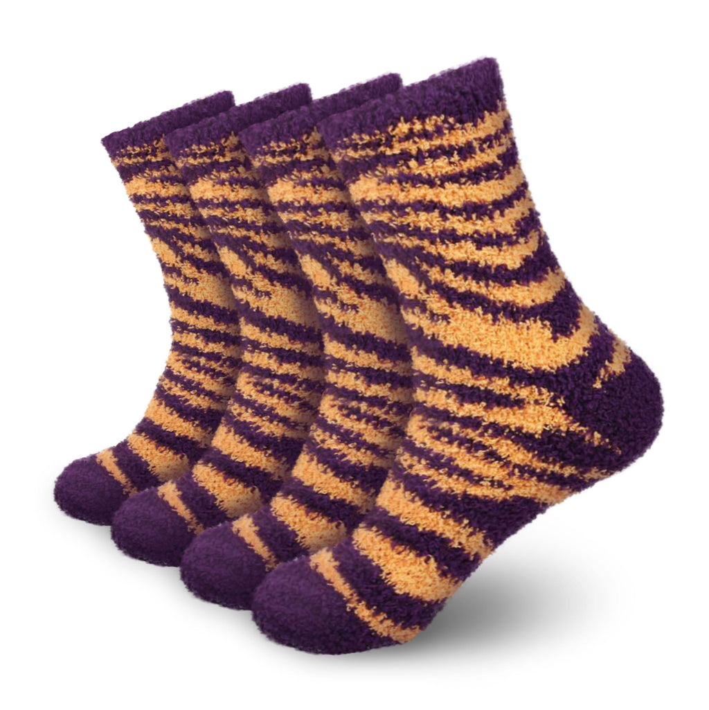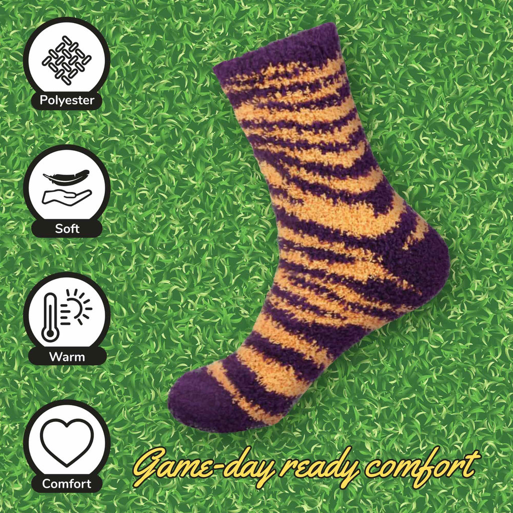 Show off your team spirit with these cozy, warm, team-colored socks. Each sock contains a beautiful zebra stripe pattern with your favorite team's colors. These are a great purchase for the sports fan in your life who can't seem to have enough team merch.