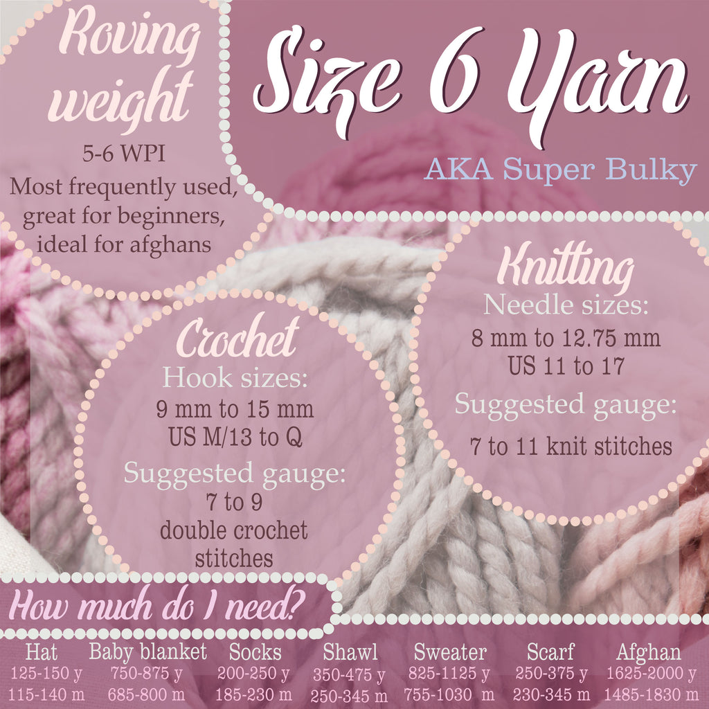 • DIMENSIONS Each skein is 100 grams; 109 yards (99 meters). Knitting needle size: US 10 (9mm). Crochet hook size: J-10